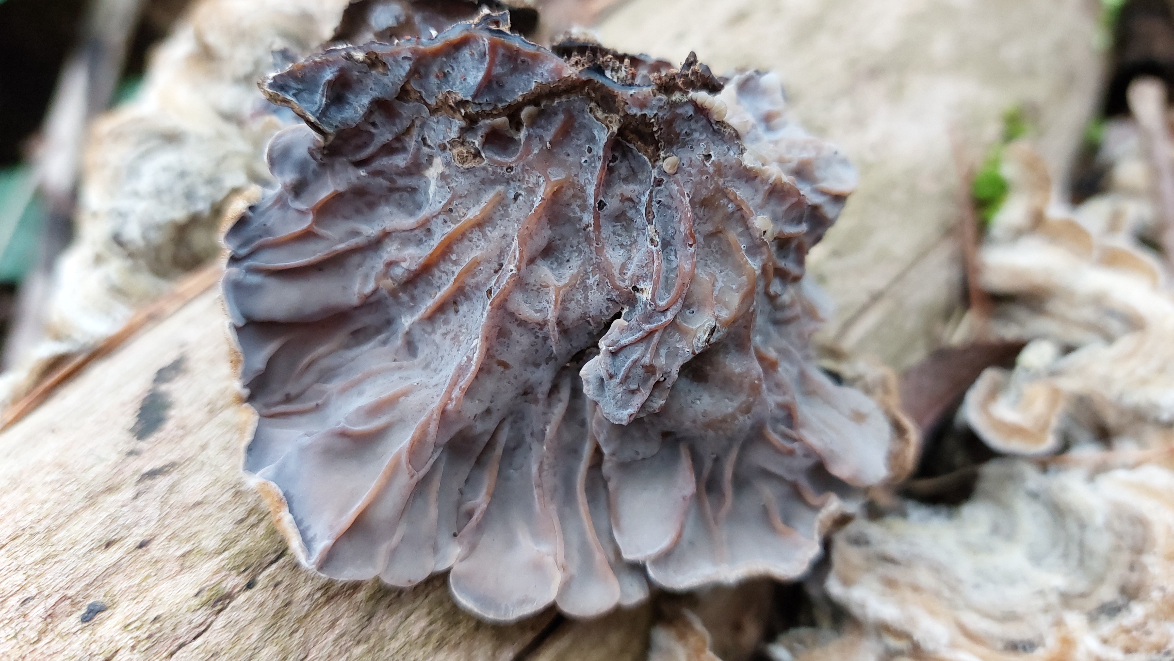 Pilzporträt "Gezonter Ohrlappenpilz (Auricularia mesenterica)"