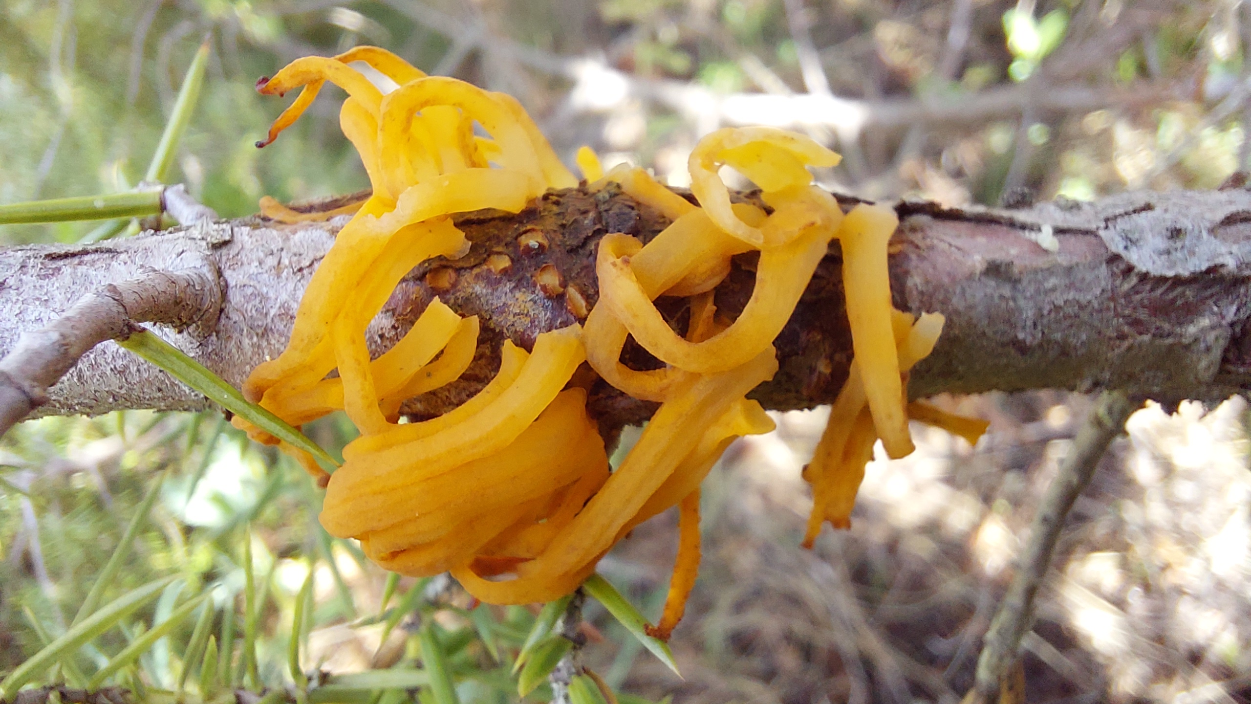 Pilzporträt "Großer Weißdorn-Gitterrost (Gymnosporangium clavariiforme)"